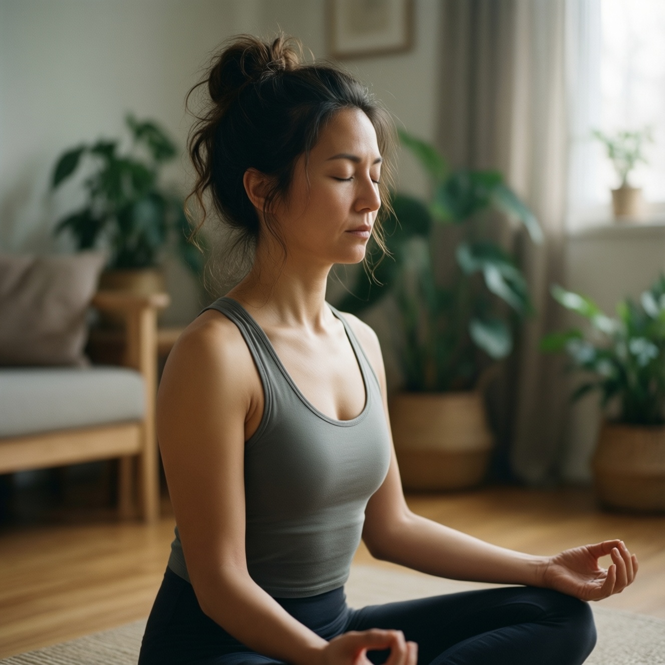 - Выберите якорь на сегодня: дыхание, стопы, звук, взгляд на одну точку.