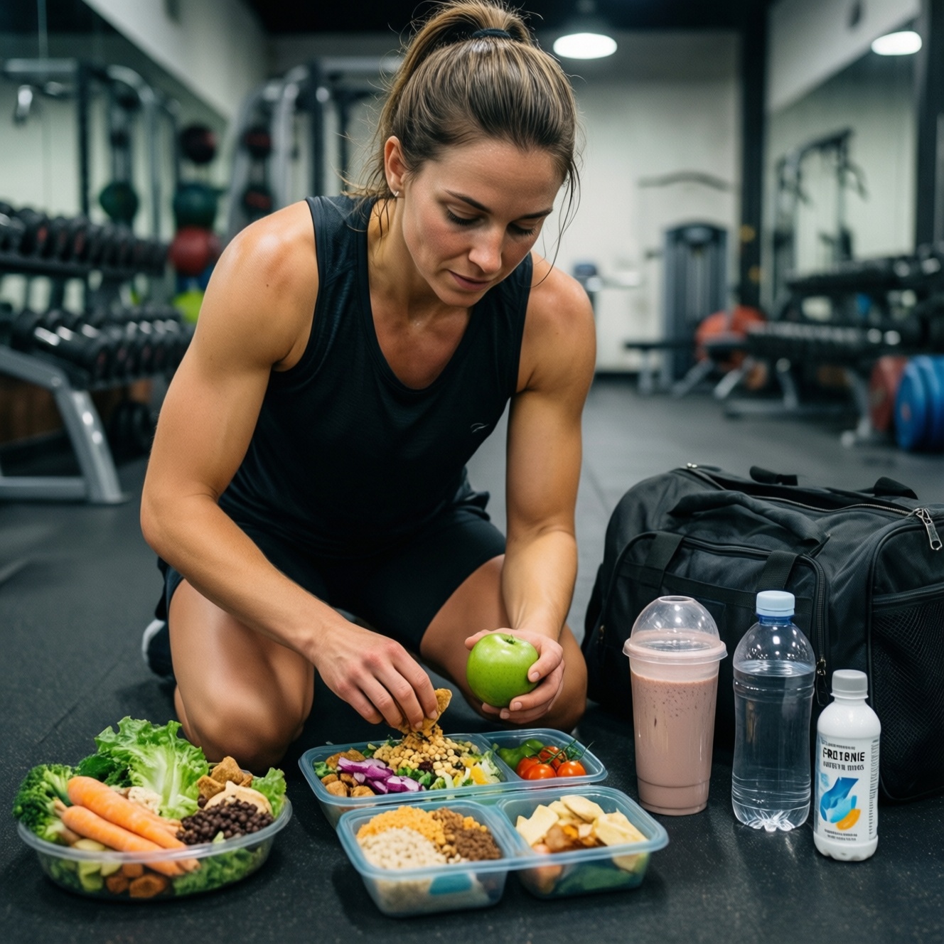 • Во время (если тренировка длительная или очень интенсивная): простые углеводы и вода по переносимости. Пример: напиток с углеводами/изотоник, банан, гель.
