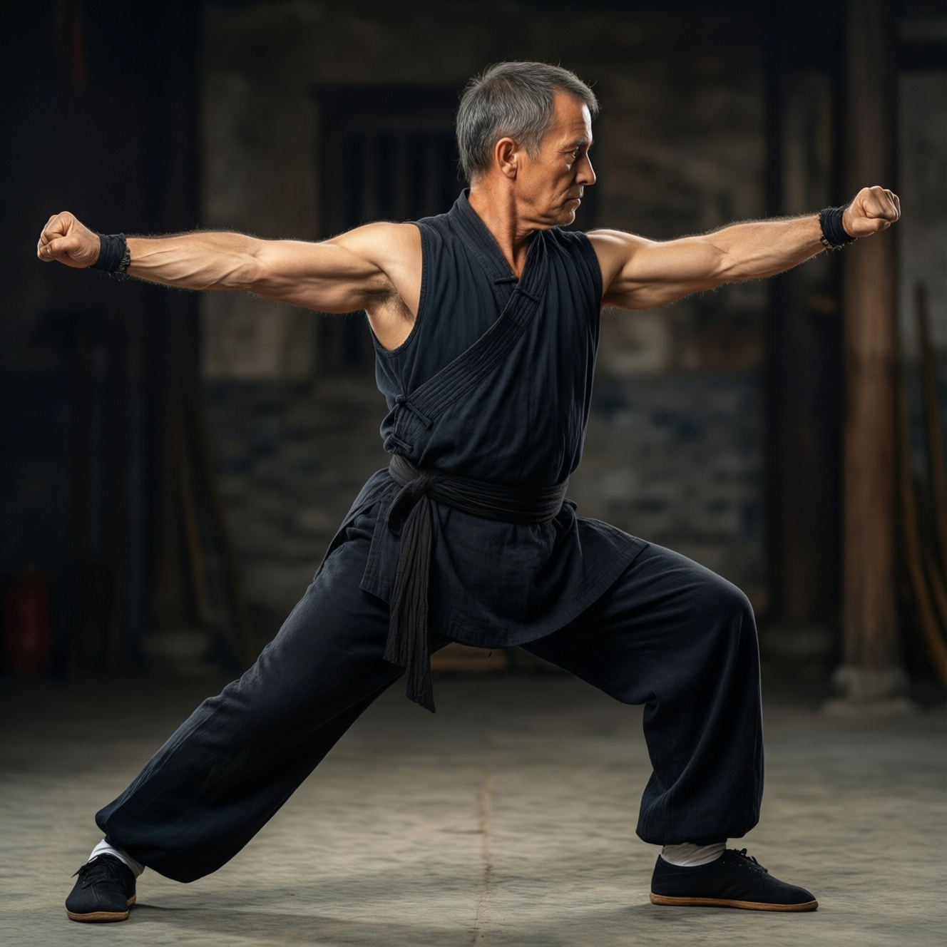 Встаньте устойчиво: стопы на ширине таза, колени мягкие, таз нейтрален. Для ударников - слегка "пружиньте" голеностопом; для борцов - добавьте лёгкий наклон корпуса вперёд, как в базовой борцовской стойке.